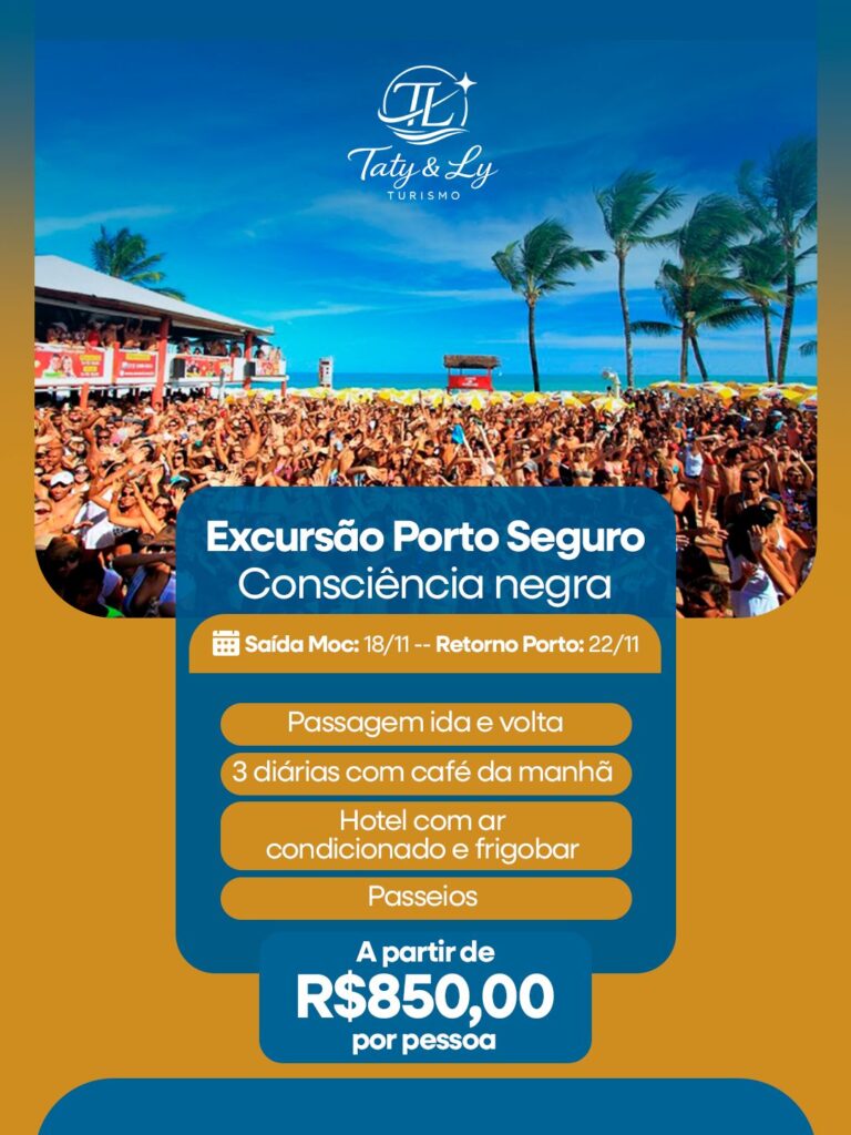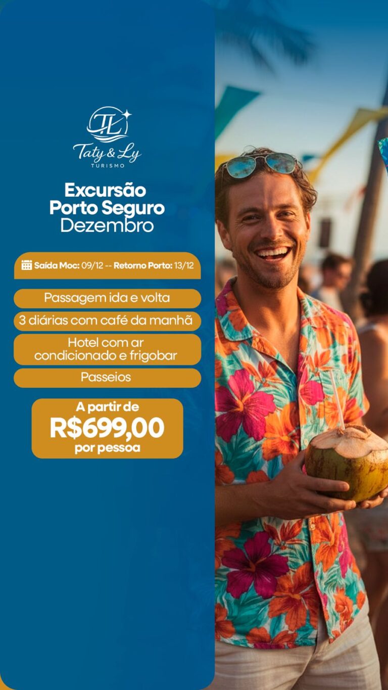 “Que final de semana incrível em Coroa Vermelha! A Taty Ly Turismo fez tudo ficar mais fácil. 💯 O ônibus nos deixou super perto da orla, facilitando muito o check-in e a volta. Sem falar na organização impecável! É a forma mais tranquila de curtir o litoral sem se preocupar com estacionamento ou pedágios. Se a Taty Ly leva, eu vou! 🥳